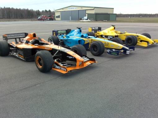 - A fleet of F1 cars at Johan Rajamaki's Race school in Sweden. The sophisticated safety features and engine/gearbox protection strategies of our paddleshift system are esential when inexperienced drivers are behind the wheel.