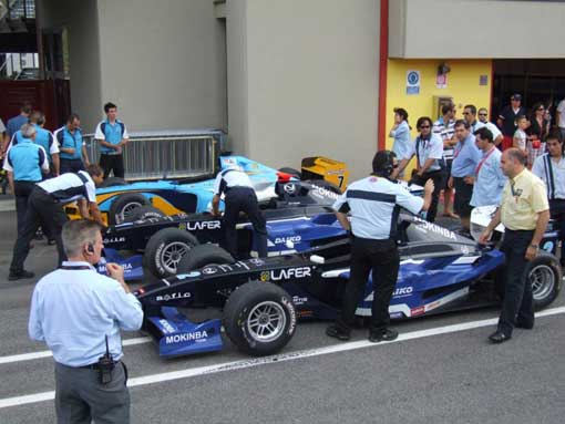 A garage shift check on a Formula 3000 car.