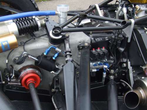 - Another compact installation, this time on a Lola B99/50 F3000 car. Notice the pneumatic actuator at the bottom of the photo - it would clearly be impossible to mount an electric solenoid in this position!