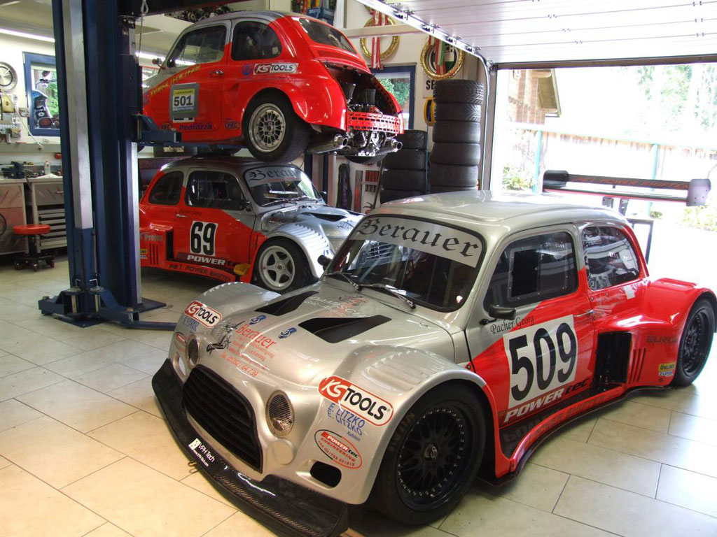 - The spectacular Puch of Austria’s Georg Pacher. Despite it’s similarity to the Fiat500 this car uses a full space-frame chassis and is powered by a Powertec V8 engine producing more than 400bhp! Keep going strong Georg!!